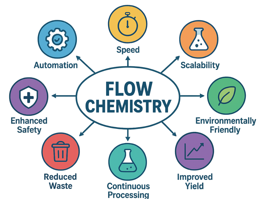 Although the principles of flow chemistry date back to the early 20th century, its modern resurgence firmly established it as a key technology in chemical R&D. It enables rapid optimization, precise control, and reliable scalability—capabilities that are increasingly essential for efficient and sustainable chemical development. Far from being a simple alternative to batch processing, flow chemistry now represents a mature and versatile approach that supports safer operations, consistent quality, and smoother transitions from research to production. The integration of machine learning for predictive optimization, together with modular reactor platforms, will continue to strengthen the role of flow chemistry in pharmaceutical synthesis and beyond.