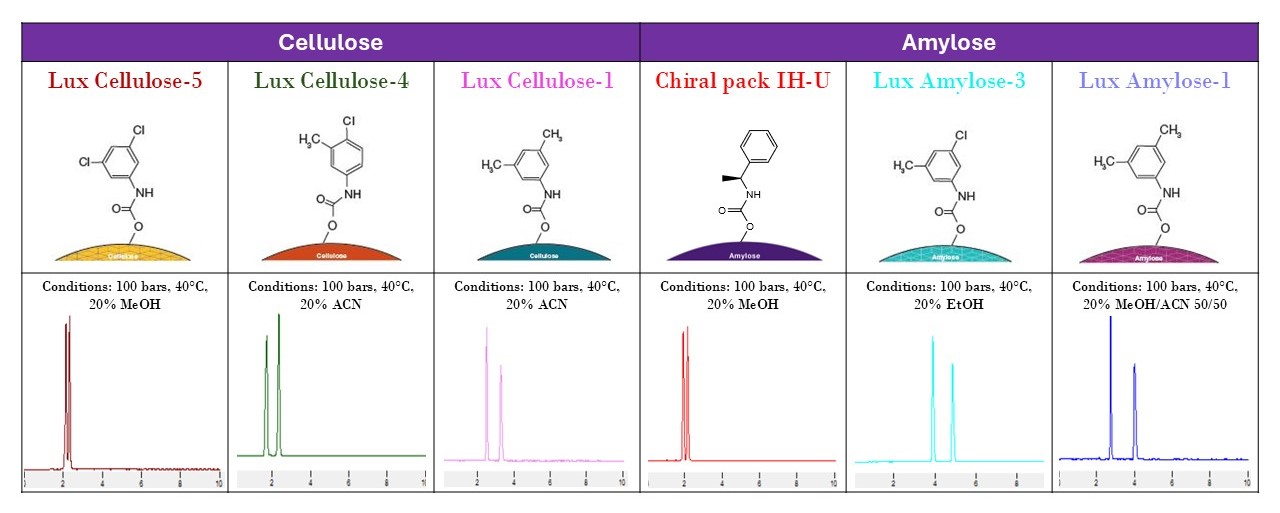 - 6 chiral columns available for rapid analytical screening allowing > 36 experimental conditions tested in a few hours